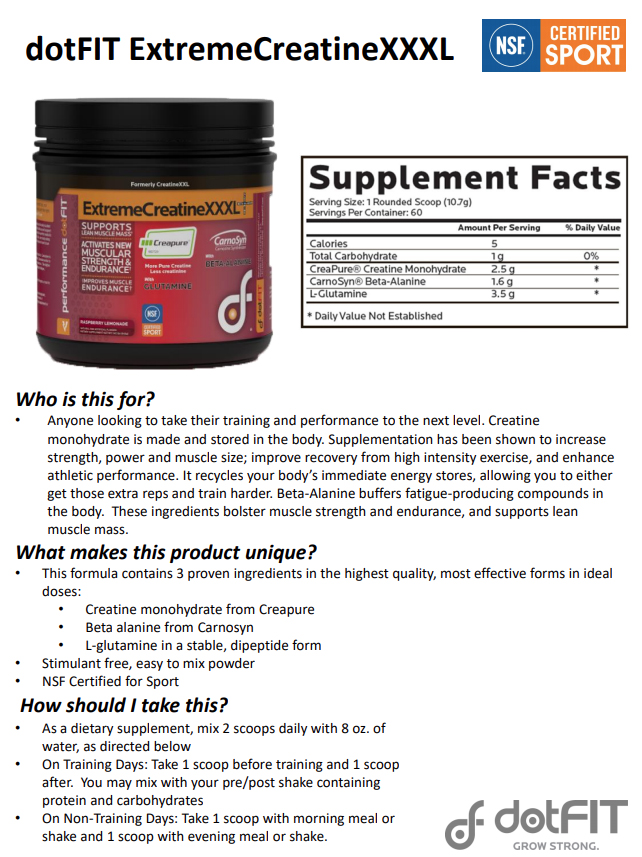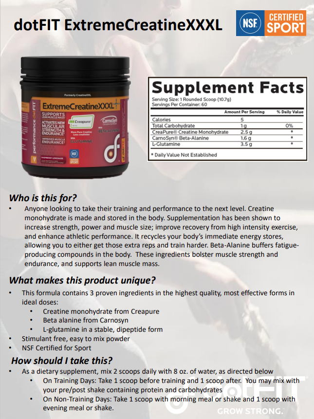 ExtremeCreatineXXXL Product Dietary Support Reference Guide (PDF)